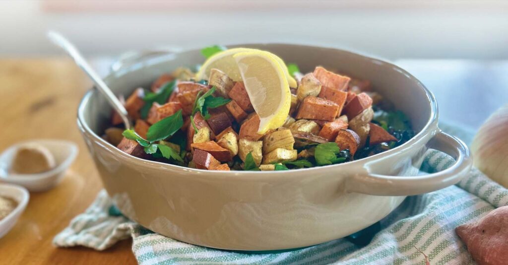 Winter Lentil & Walnut Stew with Roasted Root Vegetables